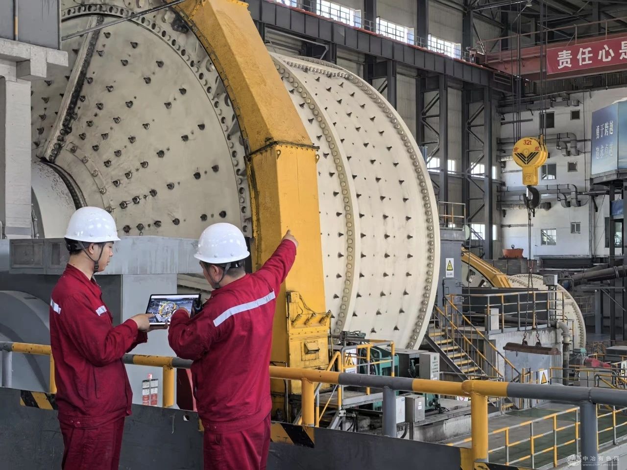 走进检修现场,三维数字孪生平台的优势尽显。选矿厂设备副厂长殷适新站在调度大屏前,屏幕上的半自磨机三维数字孪生体以厘米级精度复刻着作业场景,天车轨迹、工人站位、衬板安装角度等信息一目了然,进度条精准推进,让检修工作有条不紊。