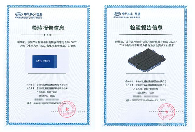 钠离子电池成功通过GB 38031-2025《电动汽车用动力蓄电池安全要求》(新版国家标准)认证测试,成为