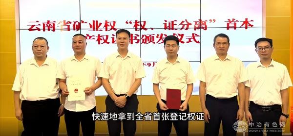 锰业有限公司董事长兼总经理李永雷成为首位持证人。这标志着云南省矿业权管理由原来的“一证载两权”模式转化为“权证分离”模式。