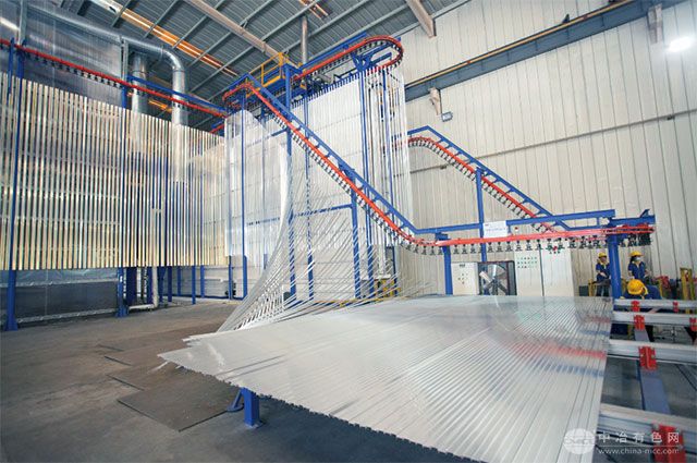 走进安邦得的生产车间,其自主研发的“全自动立式粉末喷涂生产线”正高效运转。该生产线融合精密机械结构、智能数据分析系统及现代化流水线协同作业,实现了喷涂过程的高度自动化、数字化与智能化深度融合,为铝型材行业树立了全新的效能标杆。