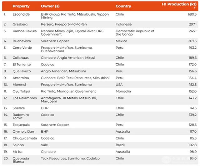 此次排名值得商榷的是,中国仅仅紫金矿业的卡莫阿-卡库拉铜矿上榜,排名第三位,中国五矿在秘鲁的拉斯邦巴斯铜矿2025年上半年的产量为21.06万吨;