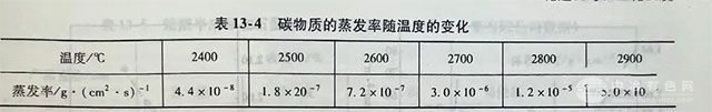 这种再结晶过程,一方面,是碳平面分子内部或分子间的碳原子移动,进行晶格的完善化和三维排列,另一方面,在2400K以上的高温,碳物质的蒸发率随温度的升高指数式地增大(见表13-4)。