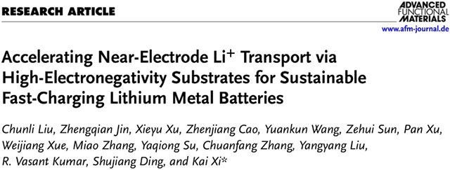 Accelerating Near-Electrode Li+ Transport via High-Electronegativity Substrates for Sustainable Fast-Charging Lithium Metal Batteries. Adv. Funct. Mater. 2025, e24392, https://doi.org/10.1002/adfm.202524392.