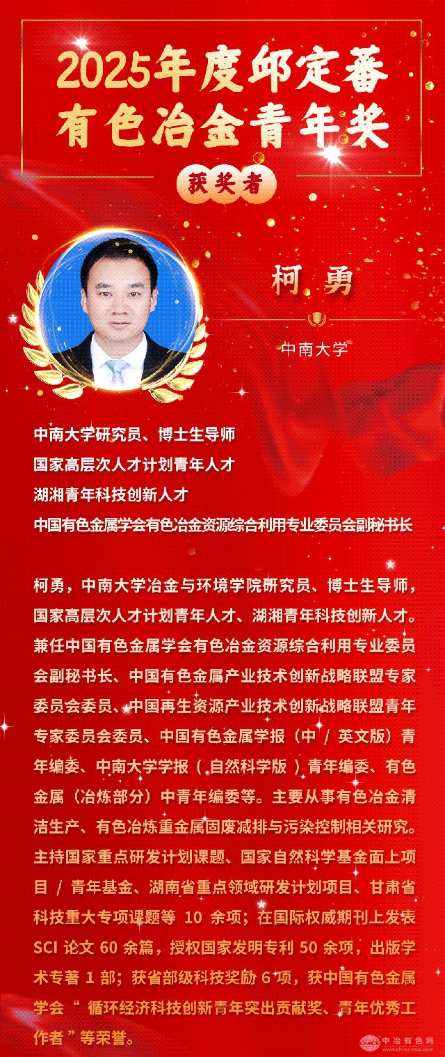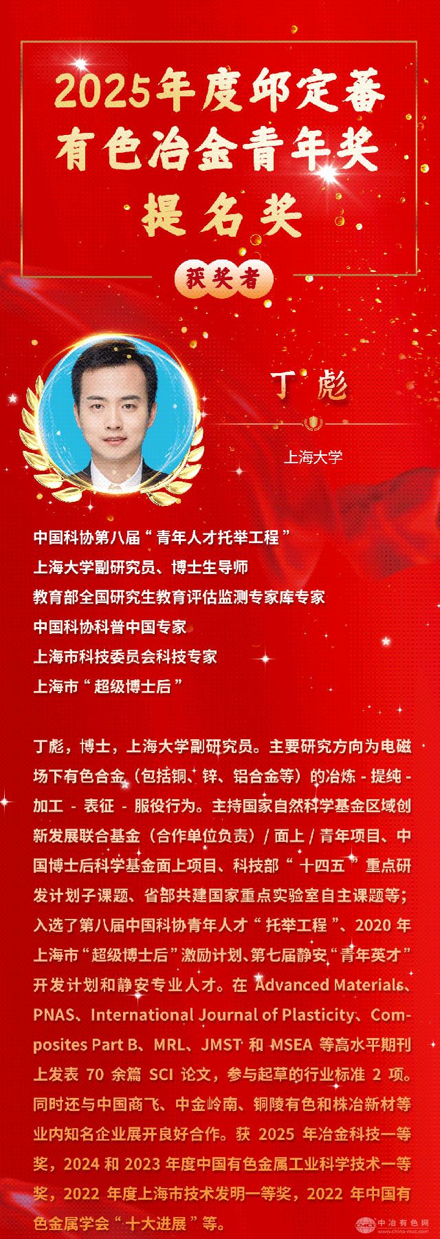2025邱定蕃有色冶金青年科技奖(提名奖)获得者
