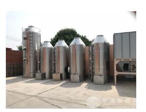 废气净化塔为圆筒型结构形式,全塔由三部份组成,即贮液、进气、喷淋、脱水和出气,耐酸水泵装在外侧,与塔进、出口管连接,塑料球分别装在喷淋内。废气净化塔为玻璃钢一体成型,结构紧凑,耐腐蚀,耐高温,外表光滑;