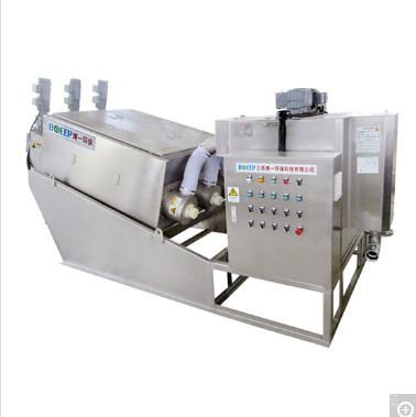 叠螺式污泥脱水机集全自动控制柜、絮凝调制槽、污泥浓缩脱水本体及集液槽于一体,可在全自动运行的条件下,实现高效絮凝,并连续完成污泥浓缩和压榨脱水工作,最终将收集的滤液回流或排放。