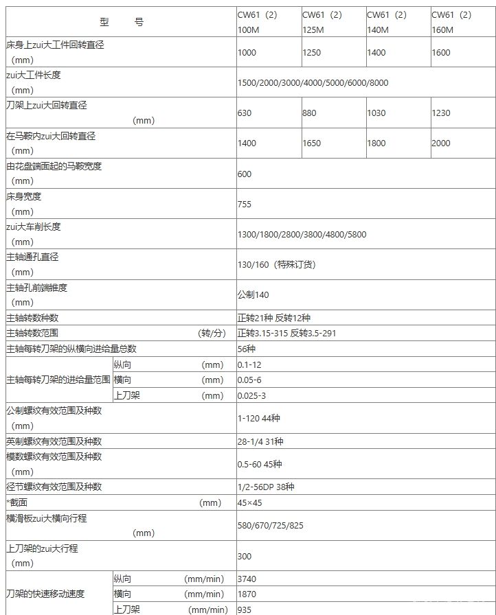 CW-M系列卧式车床特点