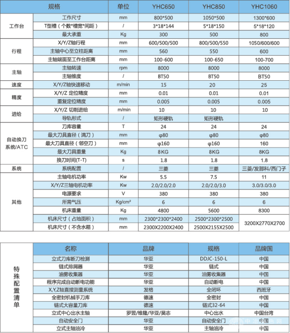 硬轨·两线一硬加工中心YHC-650/850/1060