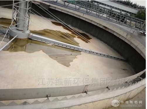 中心传动装置通过中心竖架带动刮泥架、吸泥架在池内旋转,吸泥管悬吊于吸泥架下并与中心集泥缸相连,旋转时依靠池内外的水位差,将池底活性污泥吸入集泥缸,排出池外。在吸泥臂的另一侧为刮泥臂,装于刮臂下的刮泥板将池底惰性污泥逐步刮集至池中心集泥坑内,排出池外。表面撇渣装置将液面浮渣收集刮至池边的排渣斗中排出池外。