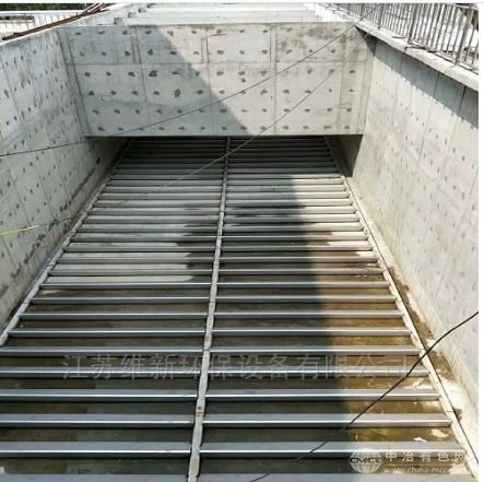 1、液压往复式刮泥机导轨安装:安装导轨固定支架,池壁的中心线作为该侧轨道中心线,也是安装完成后该侧行 走轮的中心线。以此中心线为基准,根据设计尺寸和桥架驱动梁的实际距离,准确定出另一侧轨道中心线。核测轨道中心线高程,处理混凝土基面,准确放出螺栓孔位臵,将支架底板与安装线上的预埋钢板焊接,焊接时应保证各底板中心在一条线上,两线的跨距的偏差不超出±10mm。敷设导轨,调整导轨使其直顺度、平整度和两条导轨间距离符合要求,将固定螺栓拧紧,化学螺栓在外方专家指导下使用。焊接压板,完成轨道安装。