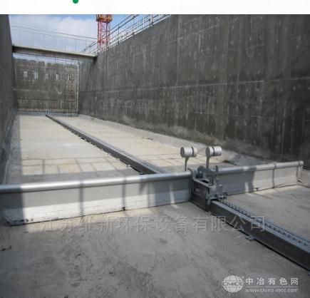 顺着水流方向刮向出水端,还是逆水刮向进水端?顺水刮泥不易搅起池底污泥,且在平流池末端可直接穿墙埋设排泥管,排泥方便,但在末端刮泥机翻板及排泥过程中会产生较大扰动将污泥搅起,影响沉淀池出水水质。平流沉淀池底的污泥量基本上是进水端多、出水端少,从泥量少的一端刮向多的一端较为合理。刮泥机运行速度很慢不易造成扰动,即使在进水端刮泥机翻板及排污泵抽吸排泥时将泥搅起来也不会影响出水端的水质。为保证水质的稳定,同时考虑到平流沉淀池内污泥的沉淀状态,决定采用由出水端向进水端刮泥的方式。