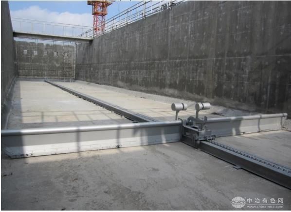 长沉淀池须釆用多车多刮板设置时,增加连接多车之间的碰杆连接装置,就能实现多车运行往返翻板同步。