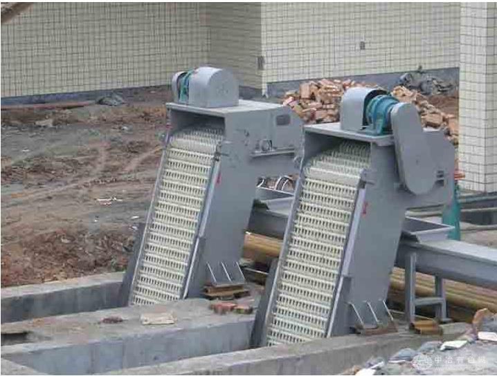 旋转式系列格栅除污机分为不锈钢网齿和非金属齿两种。在电机减速器的带动下,经链轮传动,驱动耙齿链,进行回转运动。当耙齿运转到设备上部时,由于导轮和弯轨的导向,使每组耙齿之间产生相对的运动。大部分固体物质靠重力落下,另一部分依靠转刷轴的反向运动,可以把粘在耙齿上的杂物洗刷干净。