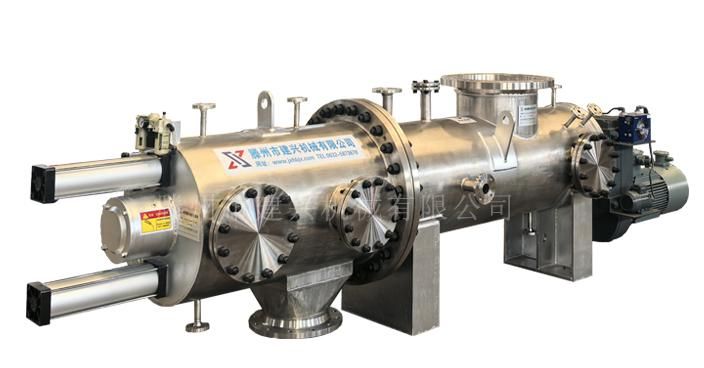 分解反应螺杆挤压机是一种在特定化学反应过程中,利用螺杆的旋转推动物料前进,并在高温高压条件下对物料进行连续挤压、逐级压榨、提取、浓缩、脱水、挤干、固液分离的设备。