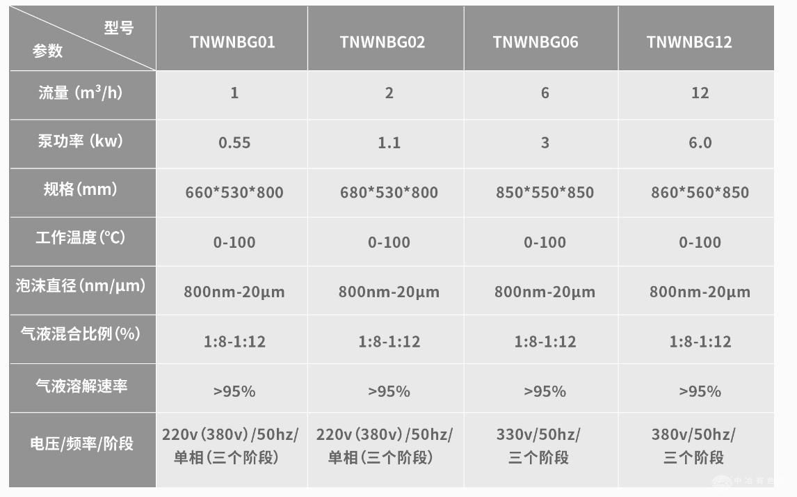 2.功能气泡直径200nm~50μm,能快速产生饱和水,气液溶解效果好。