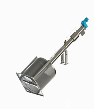 设备与水平面呈35°安装在水渠中,污水从鼓的端头流入鼓中,水通过栅网的栅缝流出,固体垃圾被过滤在栅网筐内,带有耙齿的清洁臂在圆周运动时清理格栅缝隙,耙齿伸入栅网中,将固体取出,当清洁臂处于高点时,通过水的冲洗及挡渣板的作用,将垃圾从耙齿上清除下来,并掉入垃圾收集装置螺旋输送斗中,在输送过程中通过变螺距的作用被脱水,在上端压缩区被挤干,而挤压水被回流至水渠,垃圾后送入集装箱或后继设备,再进行处理。