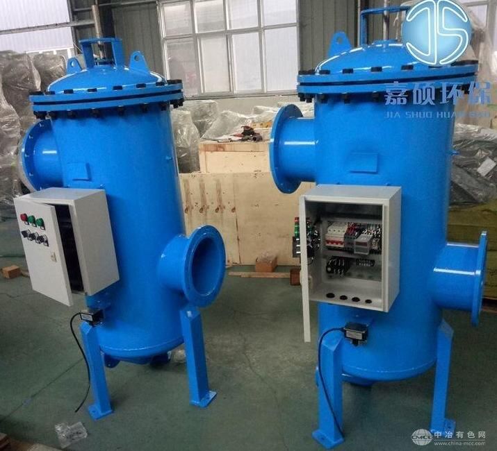 反冲洗除污器主要由***碳钢筒体、滤筒、电动排污阀、水流导向阀、换向执行器、时钟控制器等组成。当过滤器工作时,水流由入口进入过滤器,经过滤网过滤,水中的杂质被滤网截留,洁净的水经出水口送出(见图1)。当过滤器进出水压差达到0.06-0.08MPa之间(或出水压力过低,不能满足后置系统正常运行)时,则需要对滤网进行反冲洗。关闭水流导向阀,水流经滤网内侧进行反冲洗,滤网截留的杂质经排污口排出,起到反向自动冲洗滤网的作用。