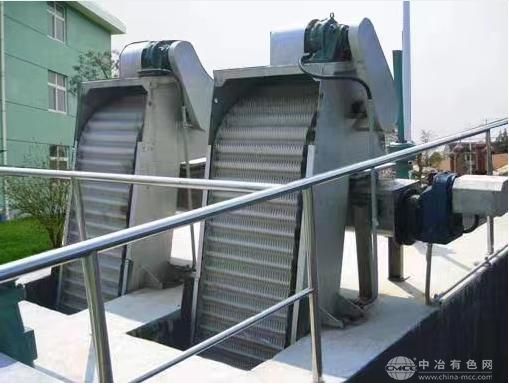 格栅排污机是一套由独特的耙齿组装而成的旋转式格栅链。在减速器的驱动下,耙齿链逆水流方向旋转。当耙齿链运行到设备上部时,由于槽轮和曲轨的引导,每组耙齿之间发生相对的自清洁运动,大部分固体物质靠重力下落。另一部分依靠自清洁装置的反向运动来清洁卡在耙齿上的杂物。根据水流方向,耙齿链类似于格栅,装配在耙齿链轴上的耙齿之间的间隙应根据使用条件选择。当耙齿分离出流体中的固体悬浮物时,可以水的顺畅流动。