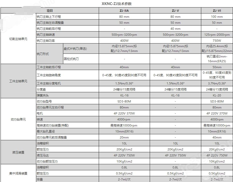 XKNC-ZJ小型精密自动钻铣机技术参数: