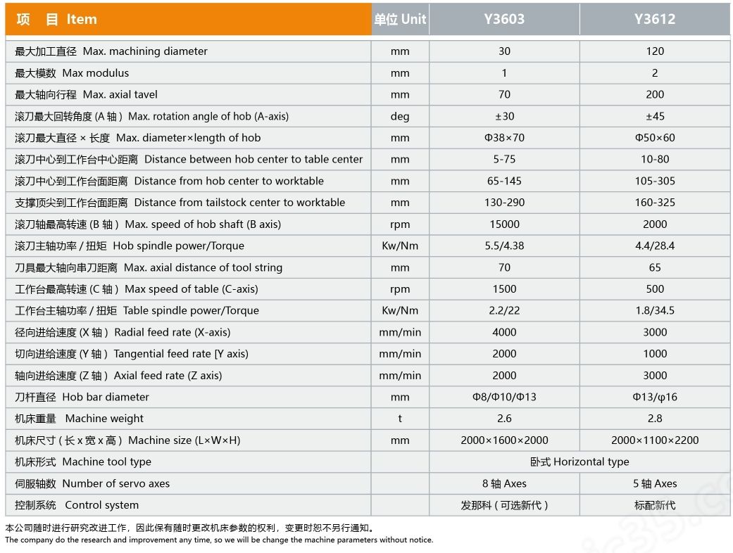 Y3603/Y3612高速数控滚齿机的技术参数: