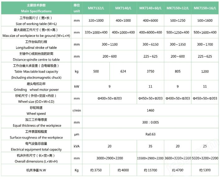 数控卧轴矩台平面磨床(立柱移动式)特点: