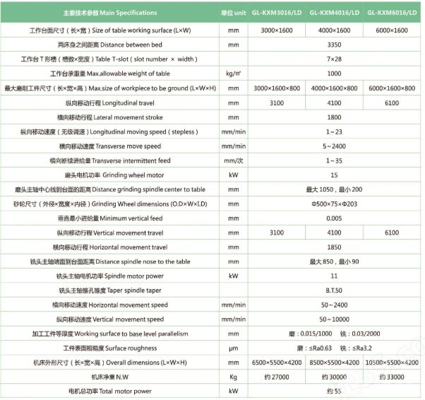 ●机床占地面积小,仅为传统工作台移动式结构的一半左右。将铣床、磨床地基合二为一,造价大为降低。