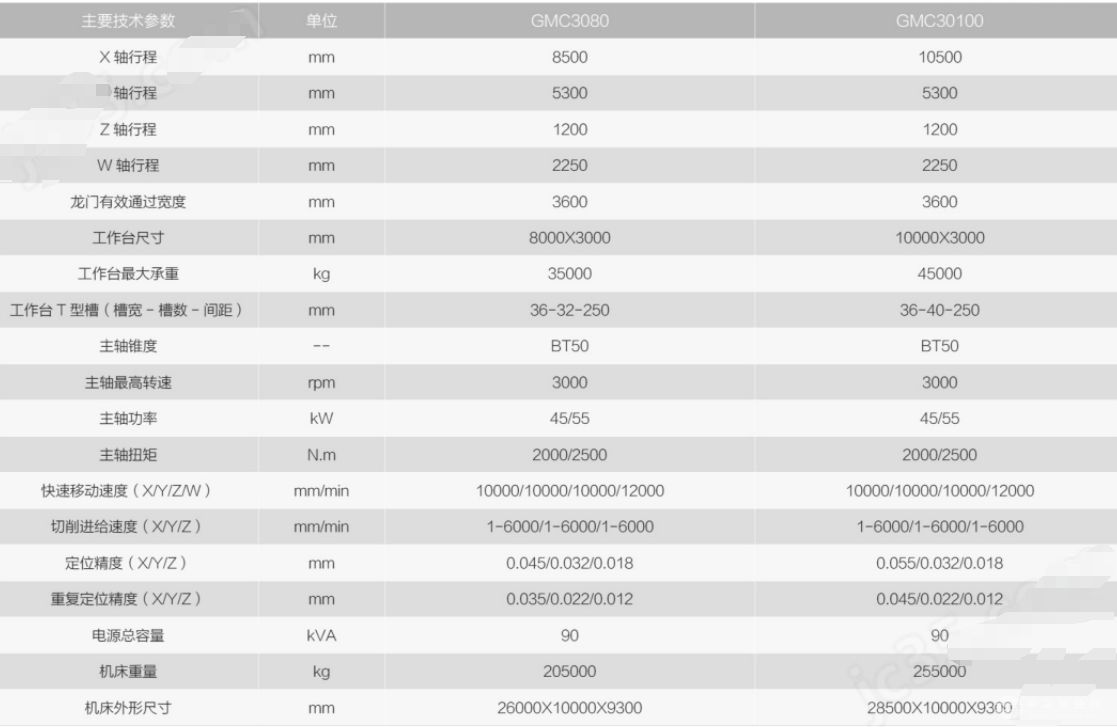 GMC30100龙门式动梁五面体加工中心技术参数: