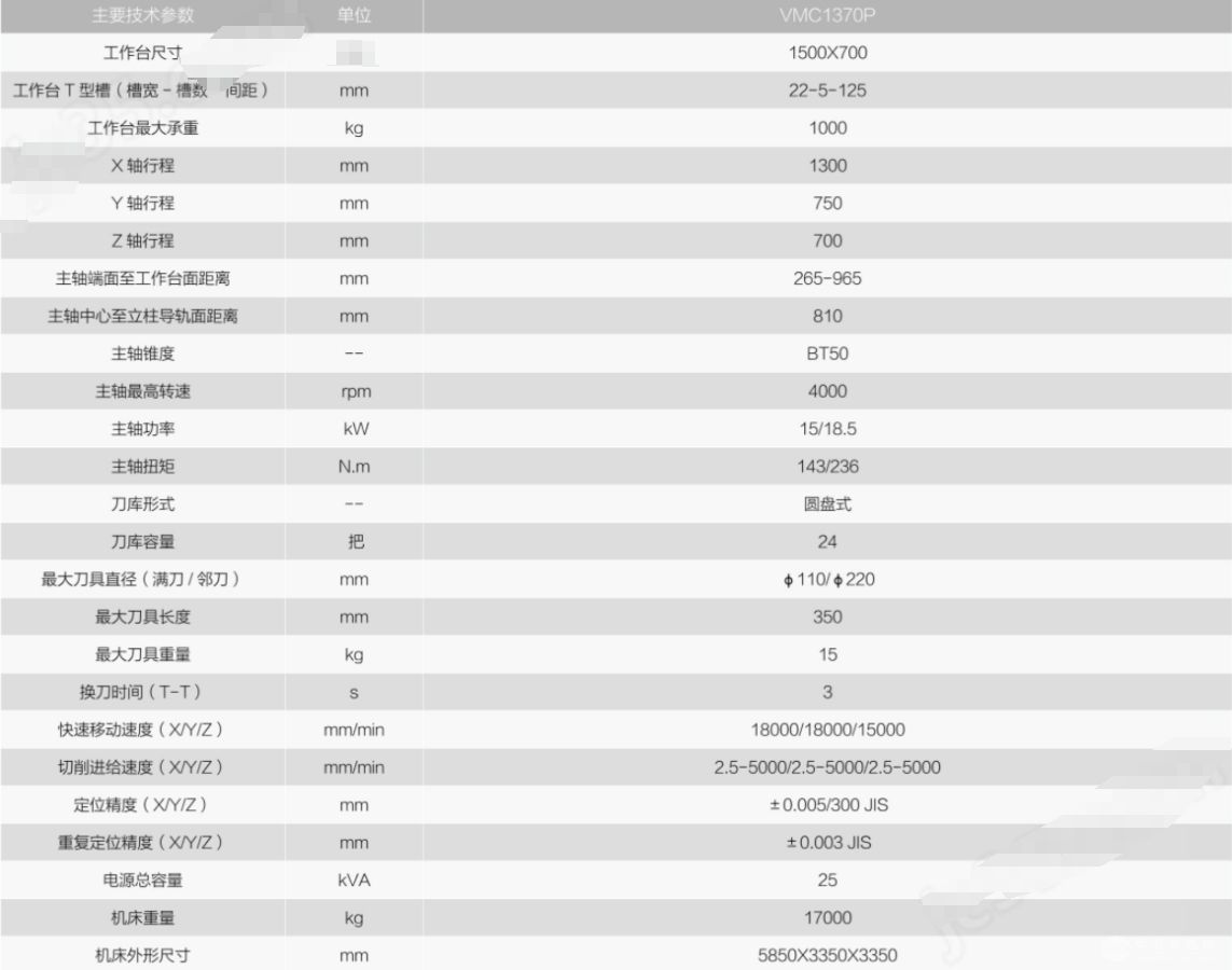 VMC1370P双工位立式加工中心技术参数: