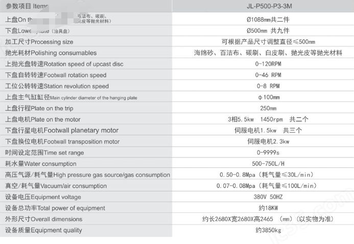 JL-P500-P3-2M连续式抛光工作站技术参数: