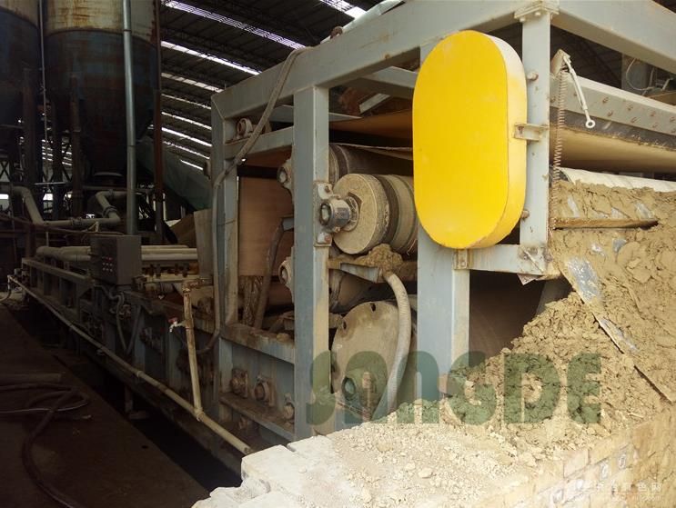 科学的设计和合理的布局,确保压滤机具有高脱水性能,主要的脱水压辊是采用有孔设计,不仅使处理能力增大,而且使污泥在两侧可同时进行脱水,滤带的两面在压滤过程中迅速脱水,缩短了脱水时间,后面较小的压辊排列以及滤带接触角的改变确保压力和剪切力的最佳组合,从而大大提高泥饼含固率和脱水效率。滤带的张力通过充气的汽缸来实现,使整条滤带保持恒定的张力,同时不会因进料量的变化而引起张力的变化,方便操作及管理,压滤机具有自动检测滤带在压辊上位置和自动纠偏的空压控制系统,对于宽滤带压滤机还配有自动污泥进料装置确保污泥均衡地进入滤带,从而提高过滤效率和延长滤带的寿命。