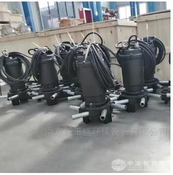 增氧离心曝气机为直联式结构。旋转的叶轮在水中产生一个离心力,通过离心力在叶轮周围形成一个负压区,空气通过进气管被吸入,被吸入的空气和水在混合盘内混合,随后这种良好的均匀的混合物自动从排出口排出。