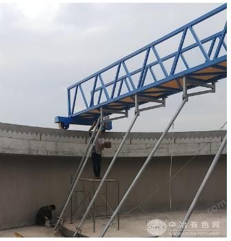 主要由主梁、中心支座、传动装置、吊架、刮泥装置、刮板、稳流筒等部件组成。由池中心的支墩和池沿上行走的车轮支承主梁,主梁的一端与在中心支墩上的中心支座铰接,另一端与装有包括减速机在内的传动装置联接。该机以支墩上的中心支座为轴沿池圆周作回转运动。在主梁下部装有刮集装置,底部的刮泥板将池底的污泥刮到池中心的排泥槽内,再由*下端的小刮泥板随刮泥机转动将排泥槽污泥搅动防止板结,污泥经排泥管排出池外。