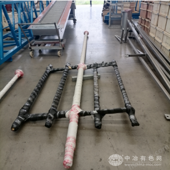 3. 找正后,将机架和底部支座下的底板点焊在预埋件上,用人力推动转动应均匀、无卡滞,后将垫板与预埋铁焊牢;