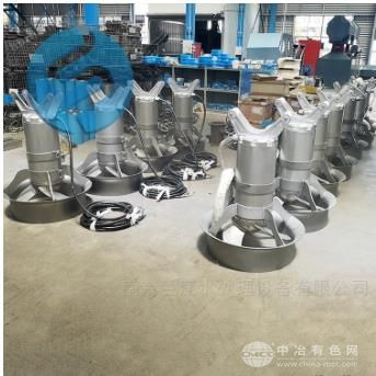 一般是由电机直接驱动叶轮旋转的潜水机电装置,中、高转速,小直径、三叶片叶轮,主要应用于污水处理厂的厌氧池、缺氧池、调节池、选择池和污泥池;推流器是由电机直联减速机构,驱动叶轮旋转的机电一体化潜水装置,低转速,大直径、两叶片叶轮,主要应用于污水处理厂的曝气池即好氧池,有时也用于厌氧池、缺氧池。