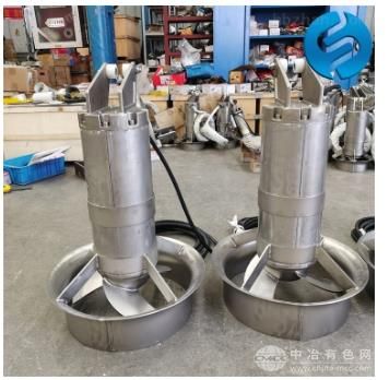 潜水搅拌机是一种新型、高效潜水搅拌机装置,该设备主要由潜水电机、叶轮、导流罩、密封机构、手摇卷扬机构、电气控制等部分构成。搅拌叶轮搅拌液体产生旋向射流,利用沿着射流表面的剪切应力来进行混合,使流场和流场以外的液体摩擦产生搅拌作用,在极度混合的同时,形成体积流,应用大体积流动模式得到受控流体的输送。