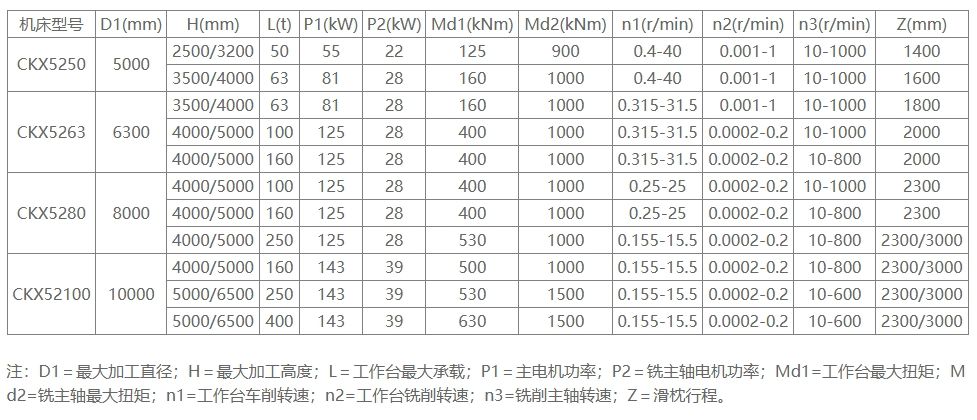 机床规格与技术参数