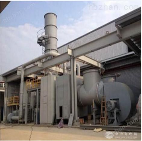3、氧化:脱附出高浓度VOCs气流,以氧化风机抽送至蓄热式焚化炉(RTO)内燃烧焚化处理,排放出干净CO2(g)及H2O(g)至大气。燃烧室高温气流被引出至气对气热交换器,与常温空气进行热交换、升温至脱附温度的热流,供脱附使用达到省能目的。