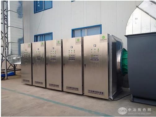 UV光解催化技术是利用特种紫外线波段(C波段),在特总催化氧化剂的作用下,将废气分子破碎并进一步氧化还原的一种特殊处理方式。废气分子先经过特殊波段高能紫外光波破碎有机分子,打断其分子链;同时,通过分解空气种的氧和水,得到高浓度臭氧,臭氧进一步吸收能量,形成氧化性能更高的自由羟基,氧化废气分子。同事根据不同的废气成分配置多中复合惰性催化剂,大大提高废气处理的速度和效率,从而达到对废气进行净化的目的。
