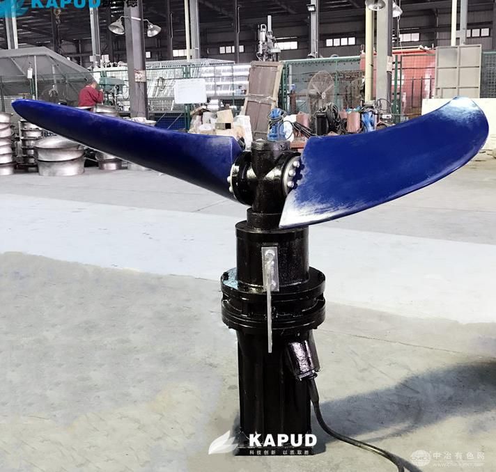 厌氧池搅拌潜水推进器俗称:潜水推流器,低速潜水搅拌机,低速潜水推流器,水下推进器,水下推流器通过电机、减速箱带动叶轮(两叶镰刀式)旋转,产生强烈的推流和搅拌作用,在推动液体前进的同时,对氧化沟(或其它水处理设施)里的混合液进行充分搅拌混合,不仅改善了氧化沟的水流条件,使水体获得工艺所要求的流速,也增加了池底水体的流动和混合,防止污泥的沉积,提高了污水处理效率。