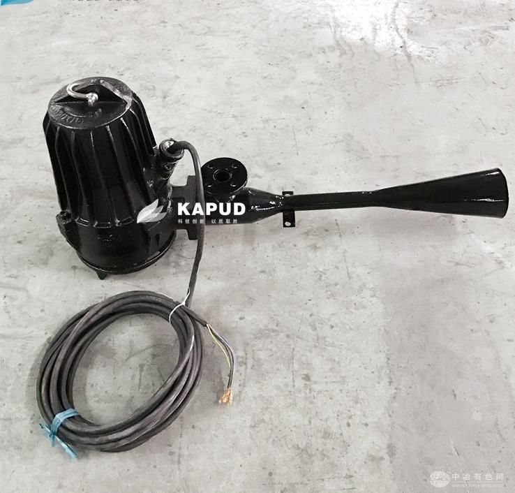 2、2.2KW自动式潜水射流曝气机曝气效能高,应用范围广。由于其高速的射流流态,液气混合充分,氧吸收率高,动力效率高。比传统曝气池处理效率高3~4倍,曝气时间可明显缩短,并适用于各种污水处理,包括推流式曝气池、混合曝气池、延时曝气池、氧化沟、氧化塘等。