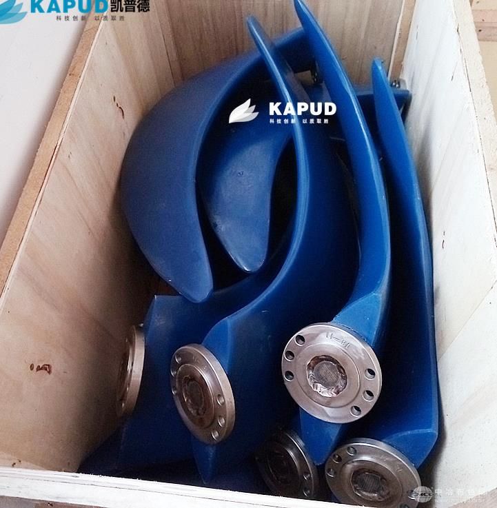 5.机械密封的摩擦付材质为耐腐蚀的碳化钨,所有紧固件均为不锈钢材质。 四 产品说明 配用功率范围:3.0-7.5KW 叶轮直径范围:1100-2500mm 叶轮转速范围:35-115r/min 推力范围:≤4275N 材质:叶浆采用进口聚氨酯材料,电机壳铸铁。