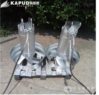 处理污泥推进时高速搅拌器按其作用形式可分为高速混合型潜水搅拌机和低速推流型潜水搅拌机。高速混合型潜水搅拌机按其结构特点又分为直联冲压式潜水搅拌机和非直联式潜水搅拌机。低速推流型潜水搅拌机属于非直流式潜水搅拌机。