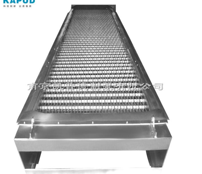 耙齿机械式回转格栅机主要有驱动设备、机架、链轮、链条、耙齿、清污设备及弹性过载保护设备等组成。耙齿机械式回转格栅机设备规格按机宽尺寸分HG300-1500型。机宽超过1500mm,则做成并联机。栅隙分为1mm、3mm、5mm、10mm、20mm、30mm、40mm、50mm等各种规格,由过水量、提升高度、固液分离总量和所分离物质的形状、颗粒大小来选择栅隙。可根据用户需要选用材质为ABS工程塑料、尼龙、不锈钢的耙齿制作;主体框架有不锈钢材质和碳钢防腐两种。