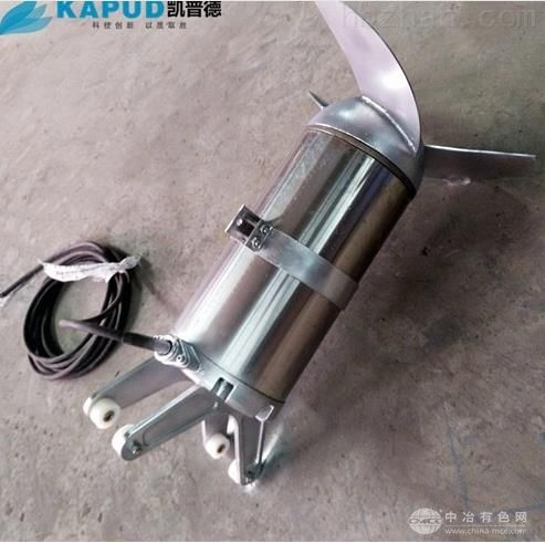 涡流沉砂池液下搅拌机QJB15/12-620/3-480硝化液高速液下搅拌机搅拌叶轮在电机驱动下旋转搅拌液体,使之产生旋向射流,并利用沿着射流表面的剪切应力来进行混合,使流场以外的液体通过摩擦产生搅拌作用,在极度混合的同时,形成体积流,应用大体积流动模式得到受控流体的输送。