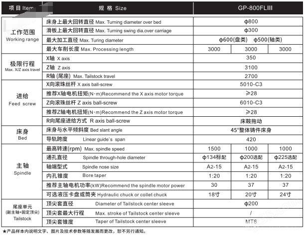 GP-800FLIII硬轨整体斜床身数控车床(装刀塔)产品特点: