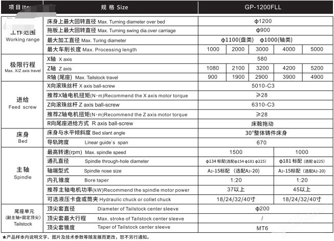 GP-1200FLL系列硬轨超重型数控车床产品介绍: