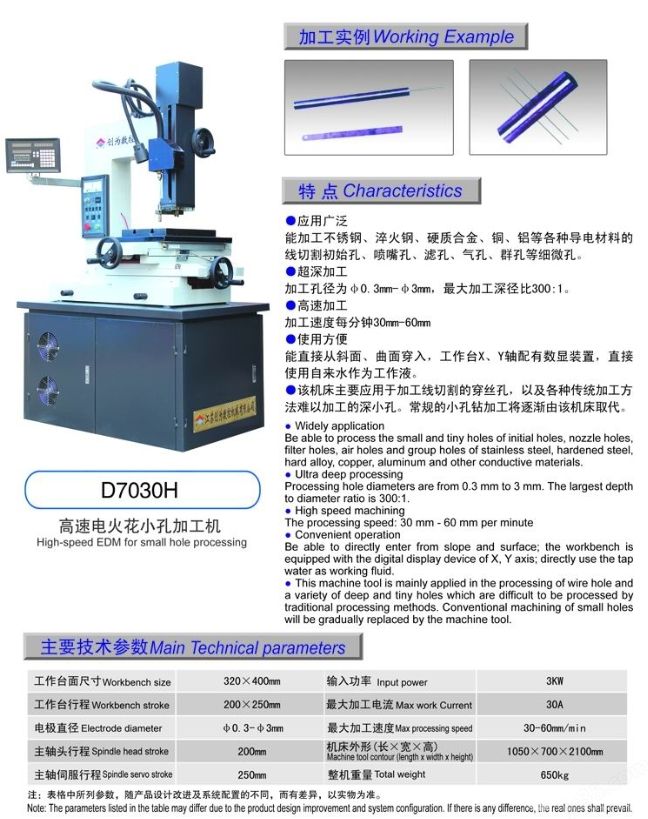 能加工不锈钢、猝火钢、硬质合金、铜、铝等各种导电材料的线切割初始孔、喷嘴孔、滤孔气孔、群孔等细微孔