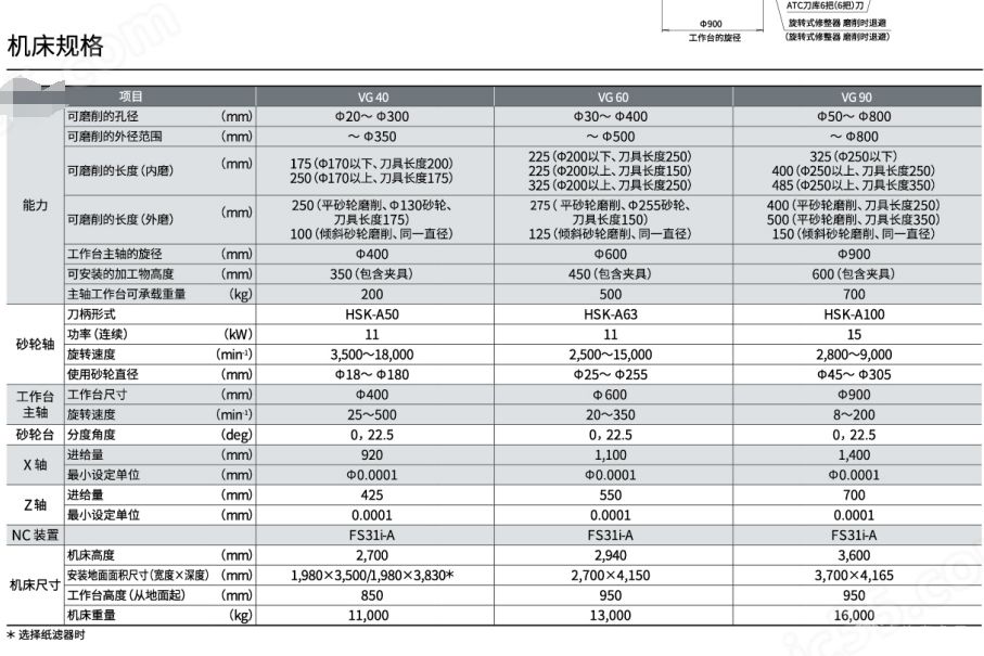 VG90数控立式磨床技术参数: