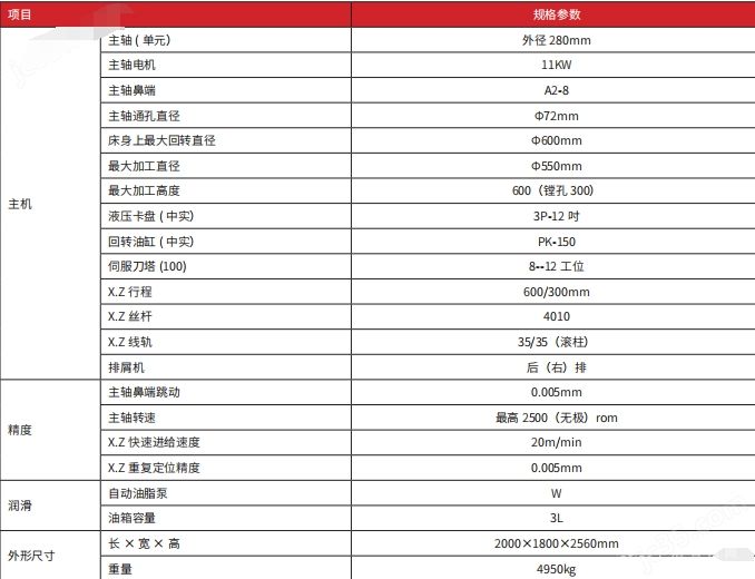 1、主轴为伺服电主轴,最高转速6000rpm;