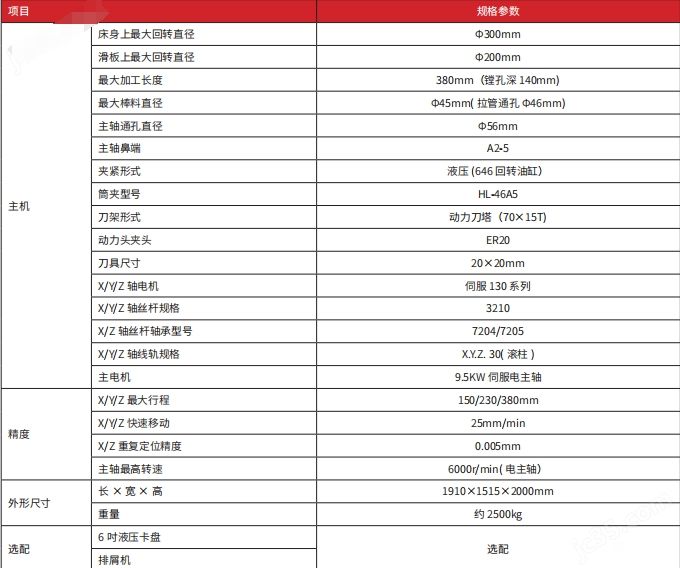 1、主轴为伺服同步电主轴,最高转速 6000rpm